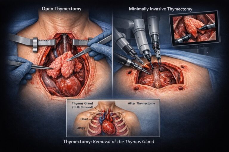 The procedure can be performed using different surgical approaches, depending on the patient’s condition and the surgeon’s preference. Traditional open surgery, known as a transsternal thymectomy, involves making an incision along the sternum to directly access the thymus. However, minimally invasive techniques such as video-assisted thoracoscopic surgery (VATS) or robotic-assisted thymectomy are increasingly popular. These methods involve smaller incisions and offer quicker recovery times, reduced pain, and less scarring. Minimally invasive thymectomy can also be as effective as open surgery in removing the thymus, particularly in cases of myasthenia gravis or thymomas (tumors of the thymus gland).
